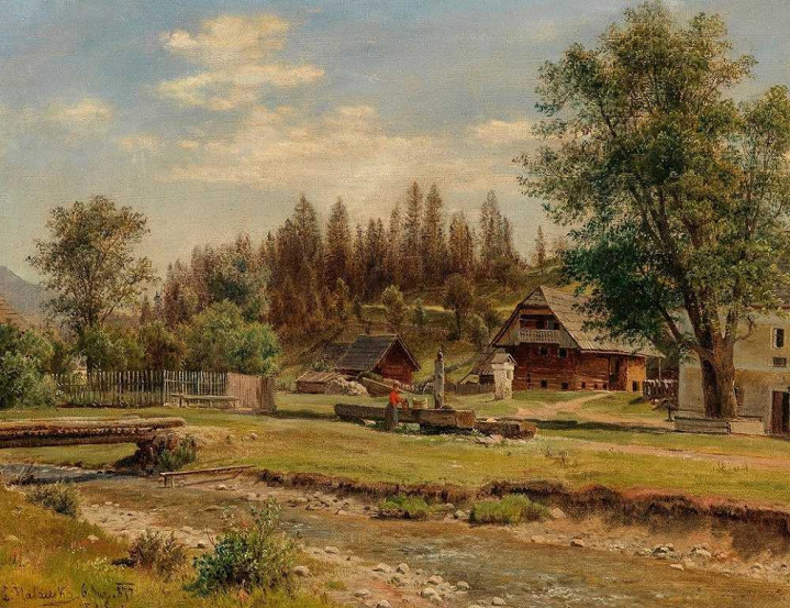 哈劳斯卡真是是 “光影捕手”!他笔下的丛林永恒带着黎明的湿润感,《林间溪谷》里,阳光透过枝桠的弊端,在青苔上投下铜钱大小的光斑,溪水面浮动着碎金般的反光,连空气里的水雾皆泛着淡蓝。他最擅长捕捉一天中最陡然即逝的光芒 —— 黎明前的鱼肚白、薄暮时的焦糖色余光,让画面永恒带着 “再看一眼就消散” 的稀奇感。