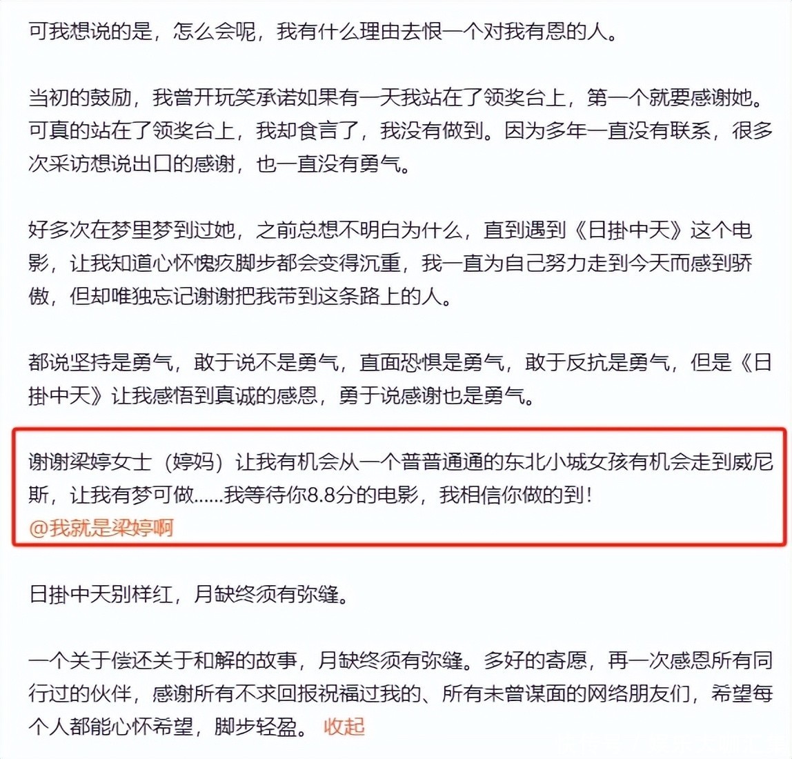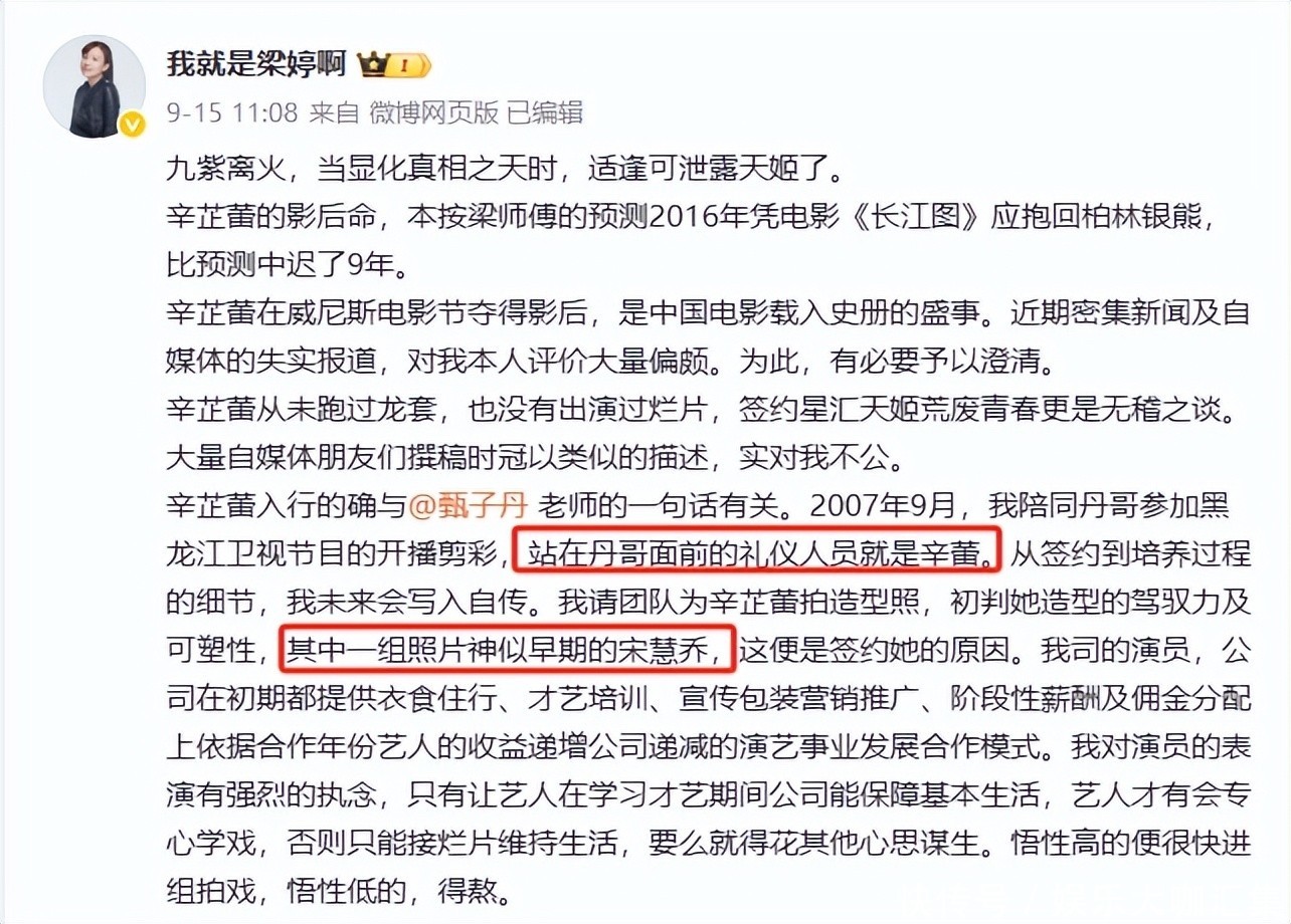 9月15日,她在外交平台发布千字长文,向昔日恩东谈主梁婷致歉并致谢: