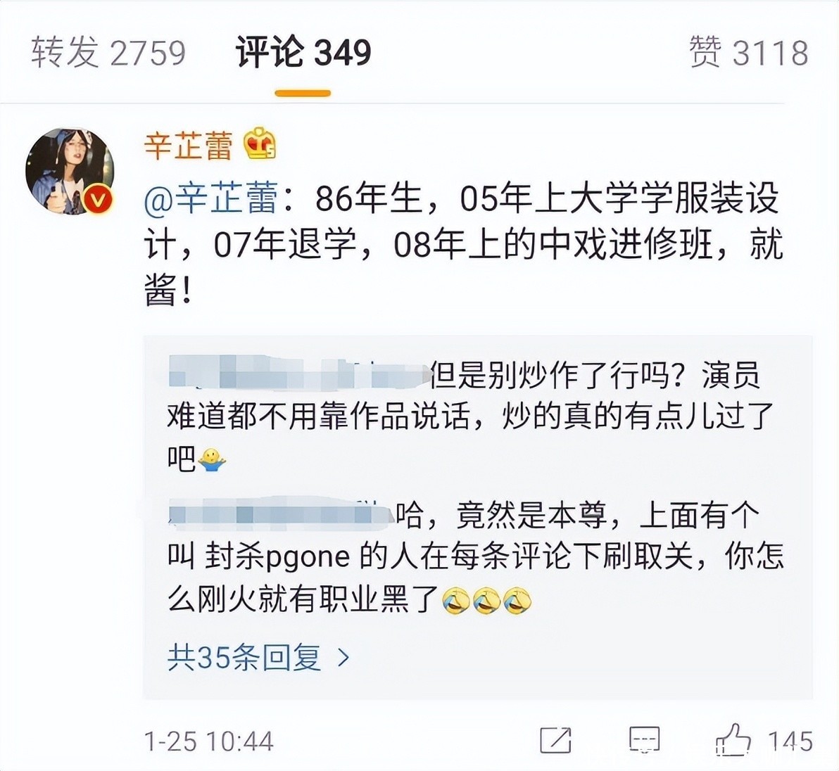 公开尊府泄漏“辛芷蕾毕业于中央戏剧学院”,但这一说法很快遭到质疑。