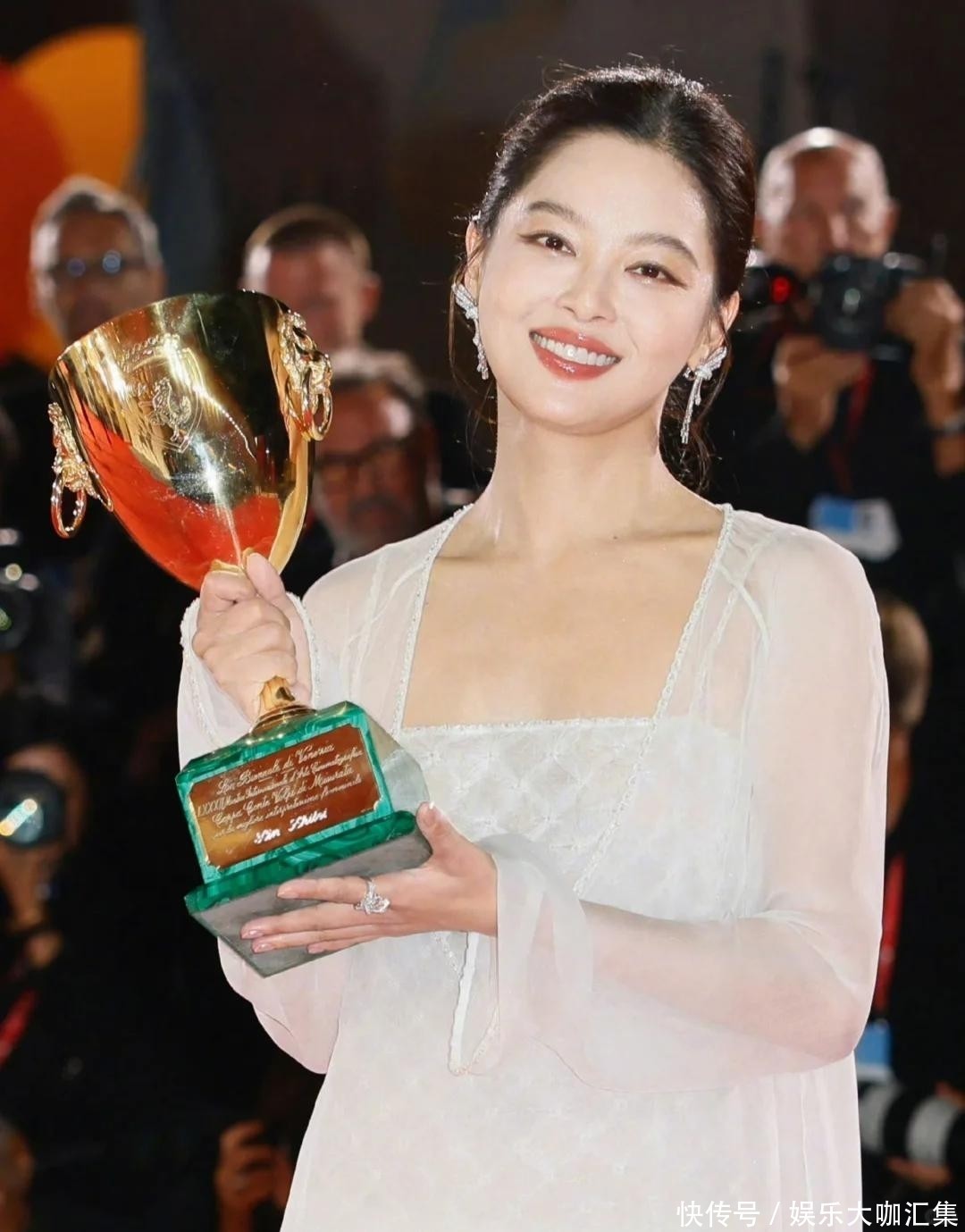 十七年后,她已站在威尼斯电影节的镁光灯下,捧起外洋影后的至高荣誉。