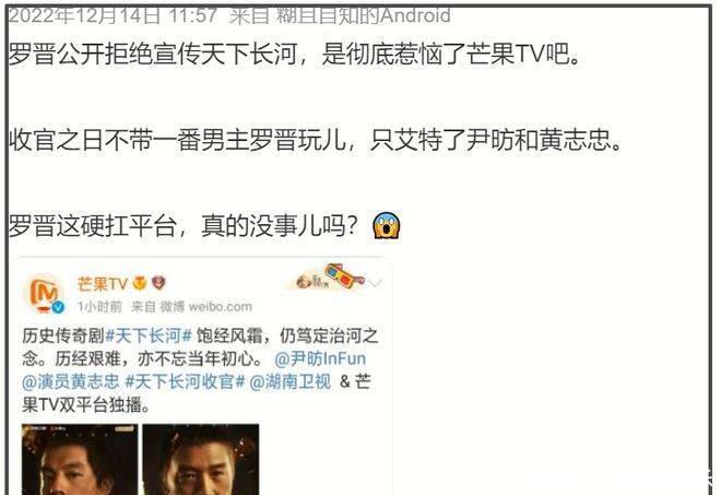 网友认为罗晋身为有妇之夫,应该终止这样的拍摄。要知说念罗晋想来很“刚”,此前因为不悦《寰球长河》的宣传形势便相等不悦,还终止宣传。网友也不禁想问,既然当初能这样刚,为何却握住绝和李一桐的宣传呢?
