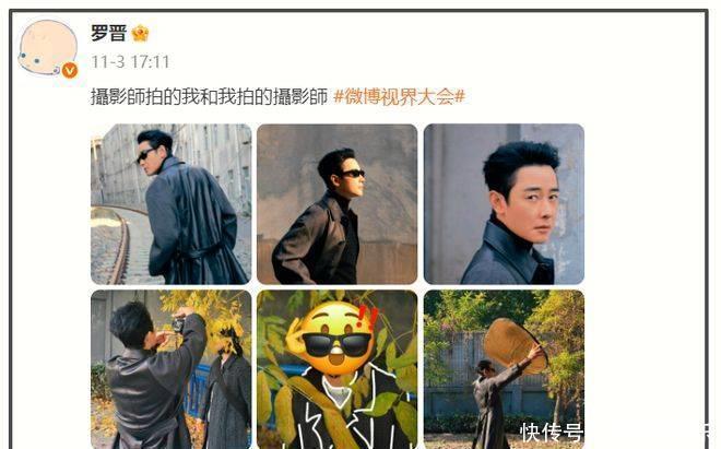 11月3日时,罗晋晒出一组干预微博视界大会的拍摄相片,除了有照相师给他拍摄的,确切还有他给照相师拍摄的角度。
