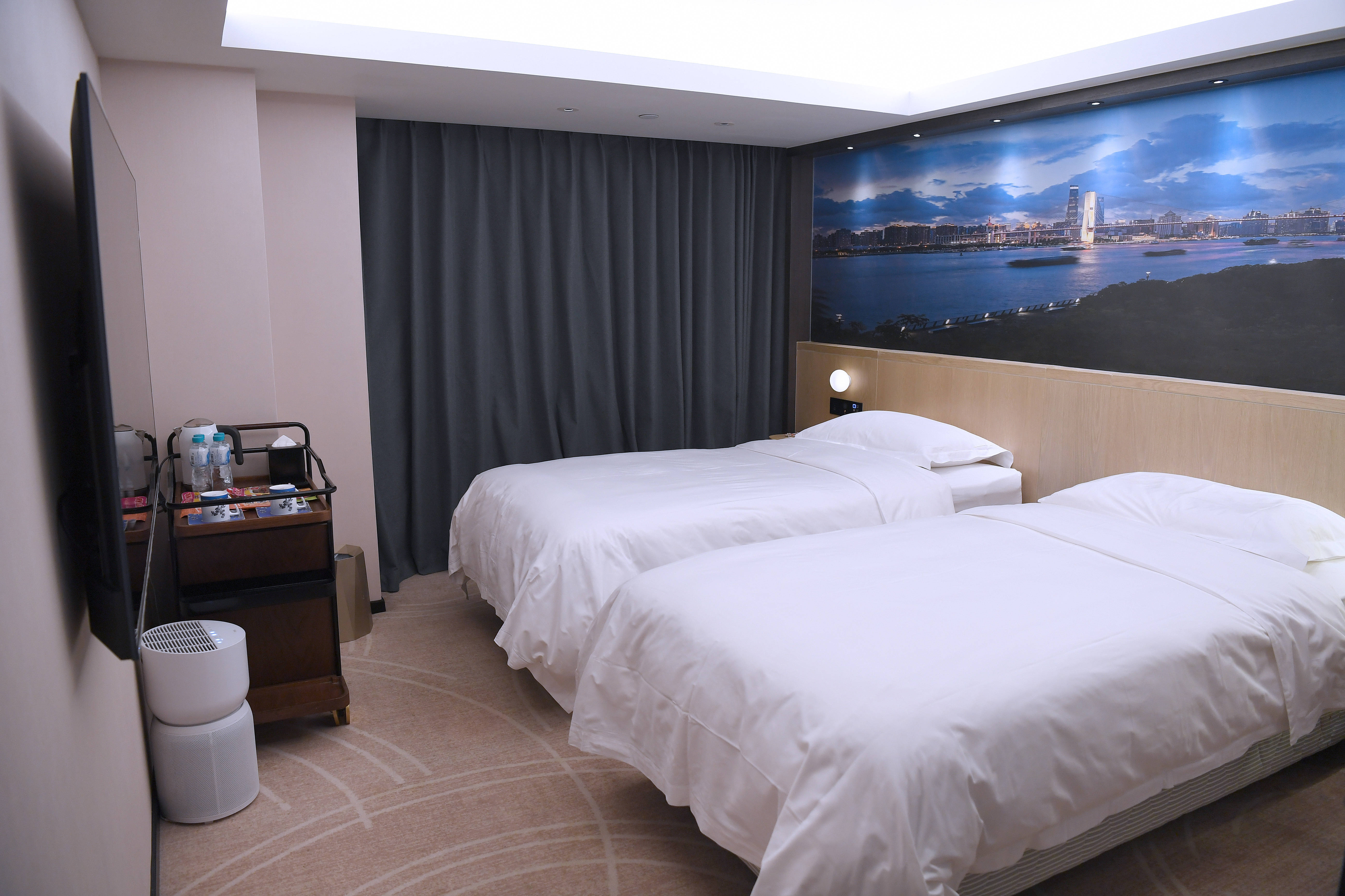 这是11月28日在粤海旅店拍摄的“爱心客房”。新华社记者 陈铎 摄适度1日上昼,已有945名居民入住由民政及后生事务局衔尾的后生寝室/营舍或旅店房间;另有1470名居民入住房屋局的过渡性房屋或香港房屋协会项观念单元。此外,政府不绝怒放两个卵翼中心,供有需要的居民使用。