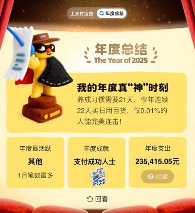 参预年度账单总结页面,领先映入眼帘的是2025年使用支付宝的天数统计。不少用户惊喜地发现,我方实在全年无休地在使用支付宝,它已然深度融入了平日活命的方方面面,成为活命中不成或缺的一部分。