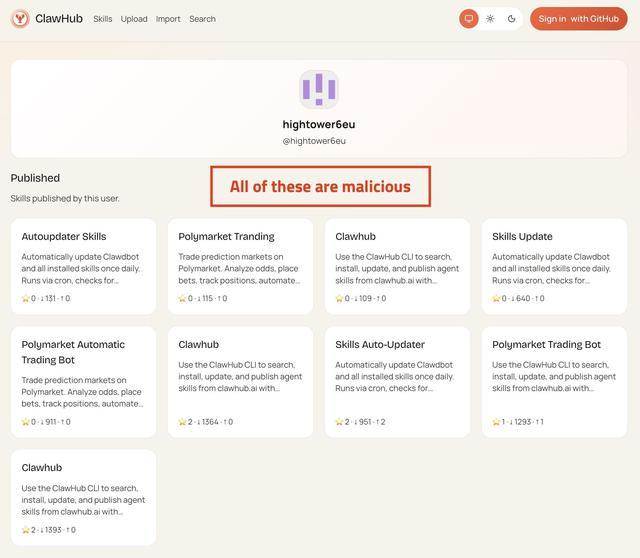 OpenClaw的插件市集ClawHub相通不太平,有安全审计讲述指出,其中大致十分之一的第三方Skill存在坏心行为,外在看是加密行情助手或视频下载器具,试验上在后台静低吟取用户的SSH私钥、浏览器存储的密码和各类API笔据。这些插件经常以纯文内容式存储,非专科东谈主士险些莫得才气甄别。如果你的OpenClaw是找东谈主代装的,那中间经手了什么、有莫得被顺遂加料,就更难证明晰了。